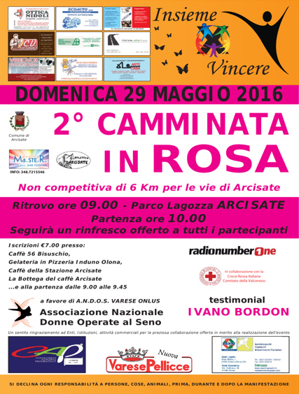 “2° Camminata in Rosa”. Una camminata non competitiva di 6Km per le vie di Arcisate.