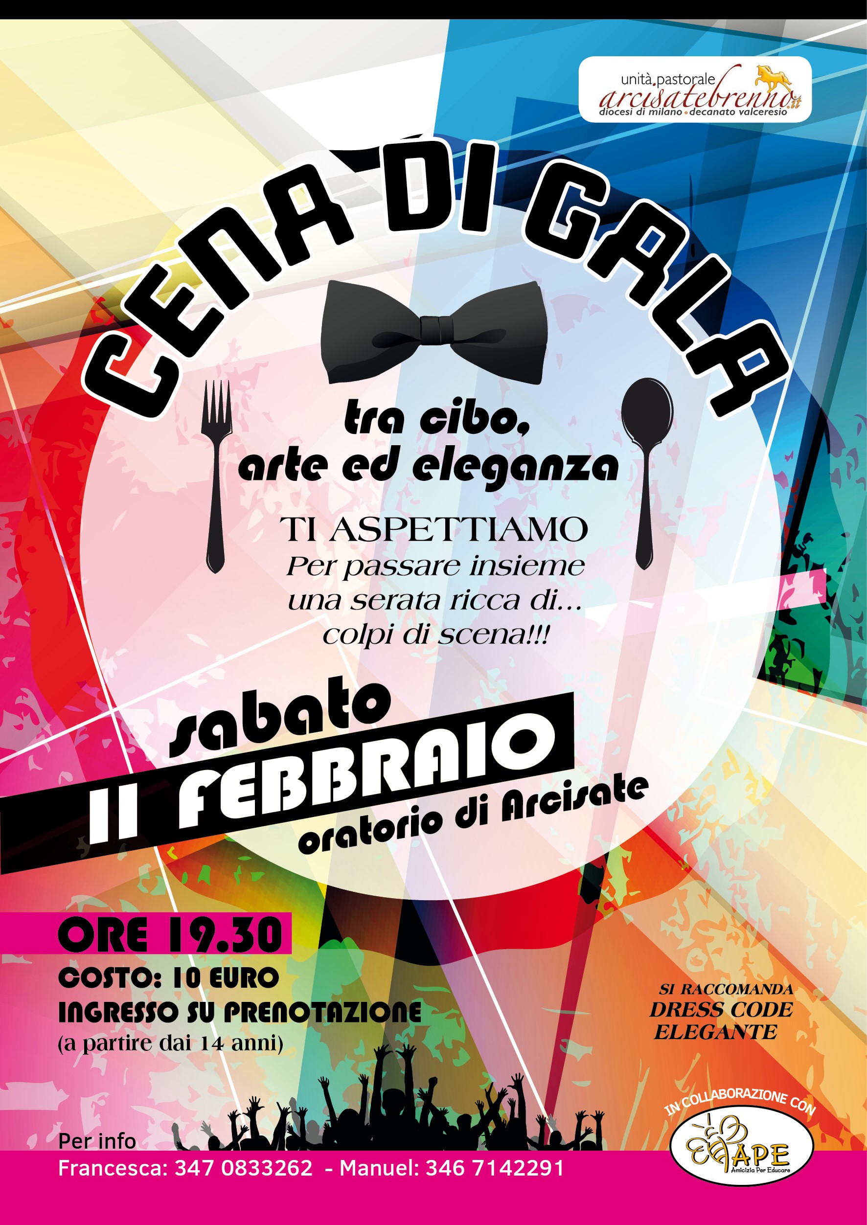L’Unità Pastorale Arcisate-Brenno in collaborazione con l’associazione APE organizza la CENA di GALA. Aperta a tutti dai 14 ani in su, una serata da passare in compagnia tra cibo, arte, eleganza e … … … … … Tanti colpi di scena.