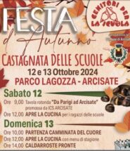 Il prossimo 12 e 13 ottobre, presso l’area feste del parco Lagozza, si svolgerà la Festa d’Autunno, ovvero la castagnata delle scuole organizzata dall’associazione Genitori per la Scuola di Arcisate. PROGRAMMA SABATO 12 OTTOBRE: Ore 9:00 Tavola