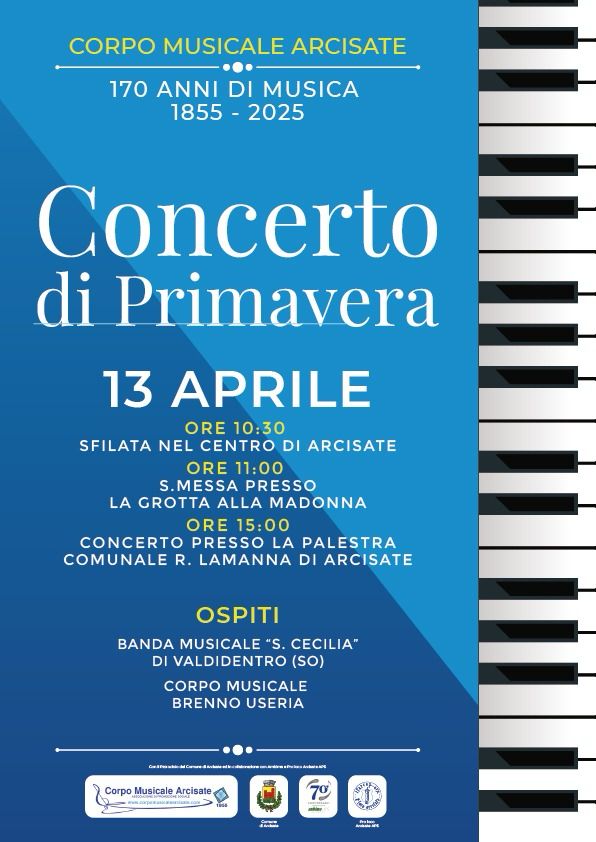 Un grande evento per celebrare 170 anni di musica: il Concerto di Primavera del Corpo Musicale Arcisate sarà ricco di eventi per festeggiare un anniversario degno di nota (1855-2025): alle ore 10:30 note allegre e spensierate echeggeranno per le strade di Arcisate fino alla “Grotta alla Madonna”, dove alle ore 11:00 verrà celebrata la Santa Messa.