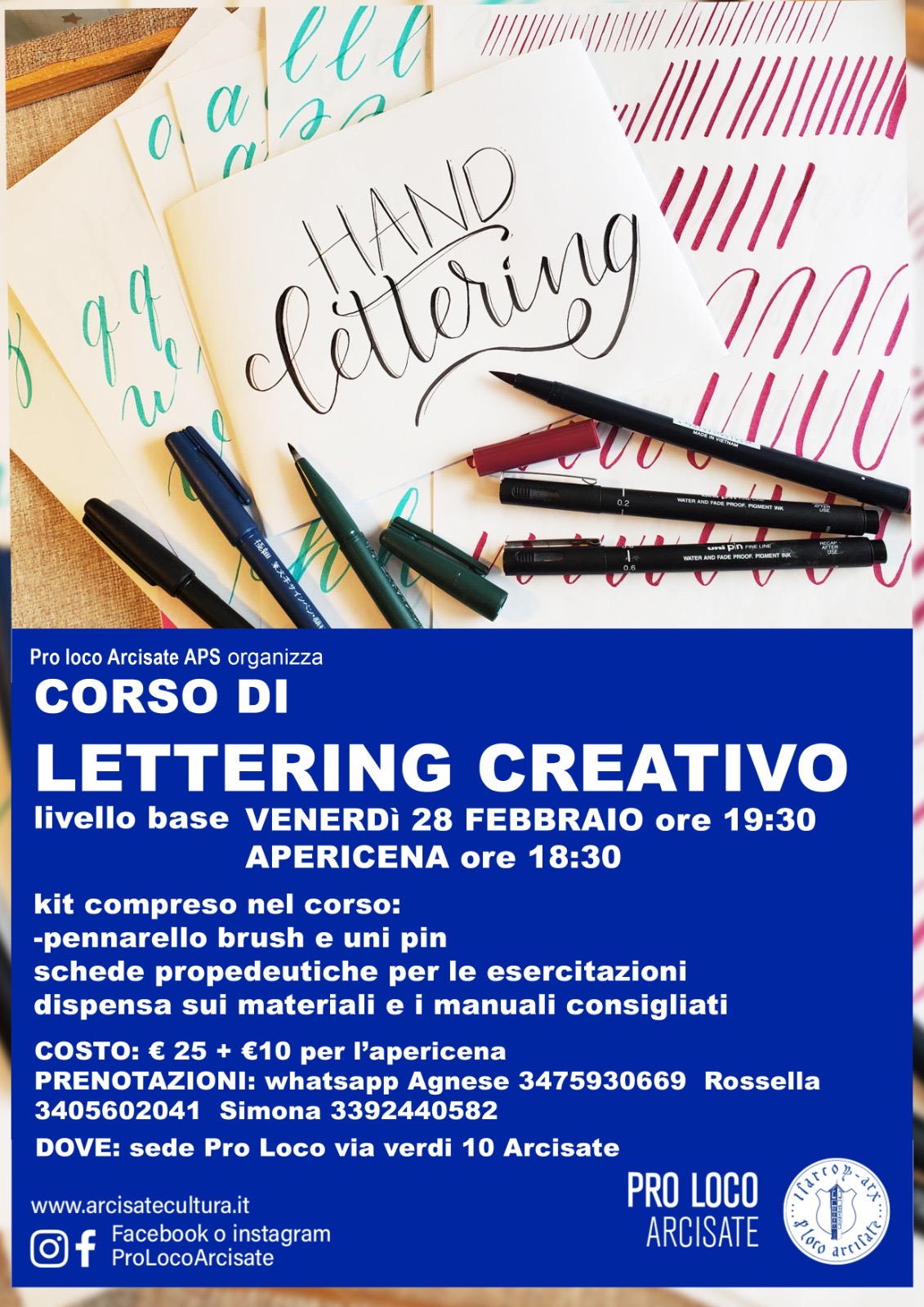 Pro Loco Arcisate, in collaborazione con Fantaroro, è lieta di presentare venerdì 28 febbraio 2025 la prima serata del corso di “lettering creativo” (livello base) ♥ si impareranno i segreti della scrittura a mano e come usare i principali strumenti e i colori per sviluppare al meglio le proprie potenzialità creative.