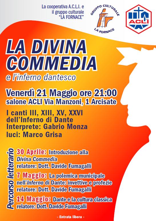 LA DIVINA COMMEDIA – presentazione Evento del 19 Aprile 2010 In Letteratura e poesia Percorso culturale-letterario di quattro serate, presso il salone dell’Acli di Arcisate; le prime tre serate, con relatore il dottor Davide Fumagalli; la quarta serata con la lettura di alcuni canti della Divina Commedia ad opera di Gabrio Monza. Related Posts Il picasass sopravvissuto al Titanic. La storia di Emilio Portaluppi I NOST RADIS – presentazione serata LA DIVINA COMMEDIA I MUSICA, POESIA E MAGIA DELLA LUCE – CANDLELIGHT