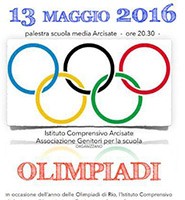 L’associazione Genitori per la Scuola e l’Istituto Comprensivo Arcisate organizzano una serata sul tema delle olimpiadi con presentazione di Eventi, personaggi e storie legati alle olimpiadi. Con la speciale partecipazione di NOEMI CANTELE, GIUSEPPE GAZZOTTI e GIUSEPPE