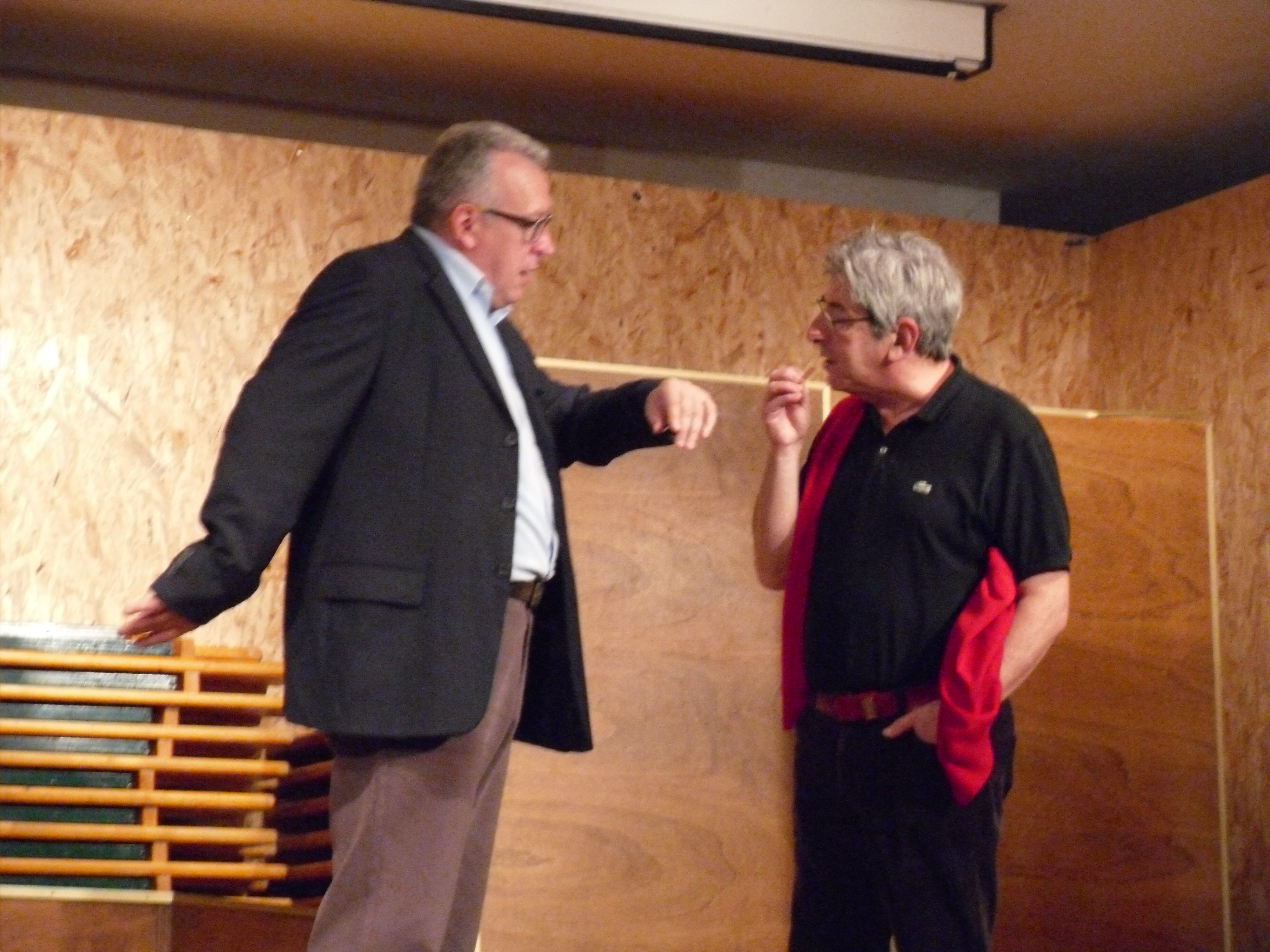 Il teatro comico si sa è anche improvvisazione; e così da una serata che pareva essere nata storta, nasce una serata ricca, ricca di aneddoti e gag, che fa scorrere il tempo veloce e permette anche l’integrazione tra recitanti e pubblico in sala…
